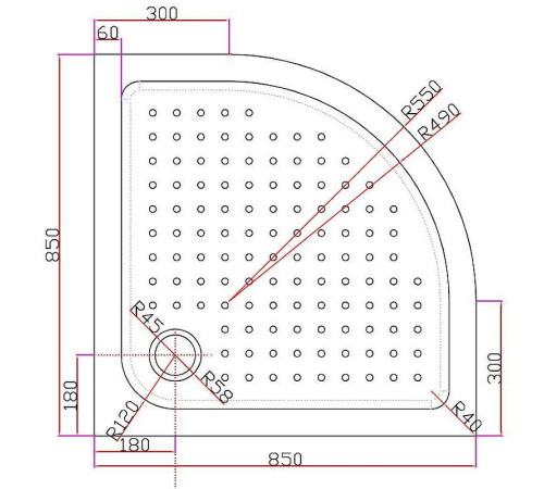- Форма: четверть круга.