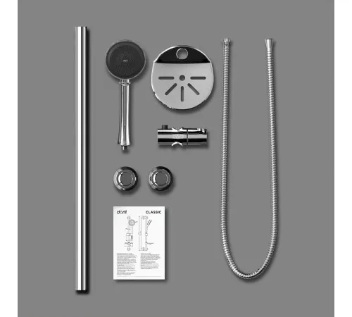 Душевой гарнитур Dorff Classic D0180000 очень практичен и удобен в использовании. Хромированный шланг комплекта защищен от перекручивания, есть функция регулировки по высоте, удобная мыльница, а ручной душ имеет 5 функций. Стильный дизайн и минималистичное цветовое решение позволит удачно вписать душ в любой дизайн интерьера.