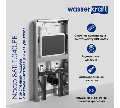 1004 ммПристенный модуль системы инсталляции WasserKRAFT Naab 86TLT.040.PE.BL для унитаза.